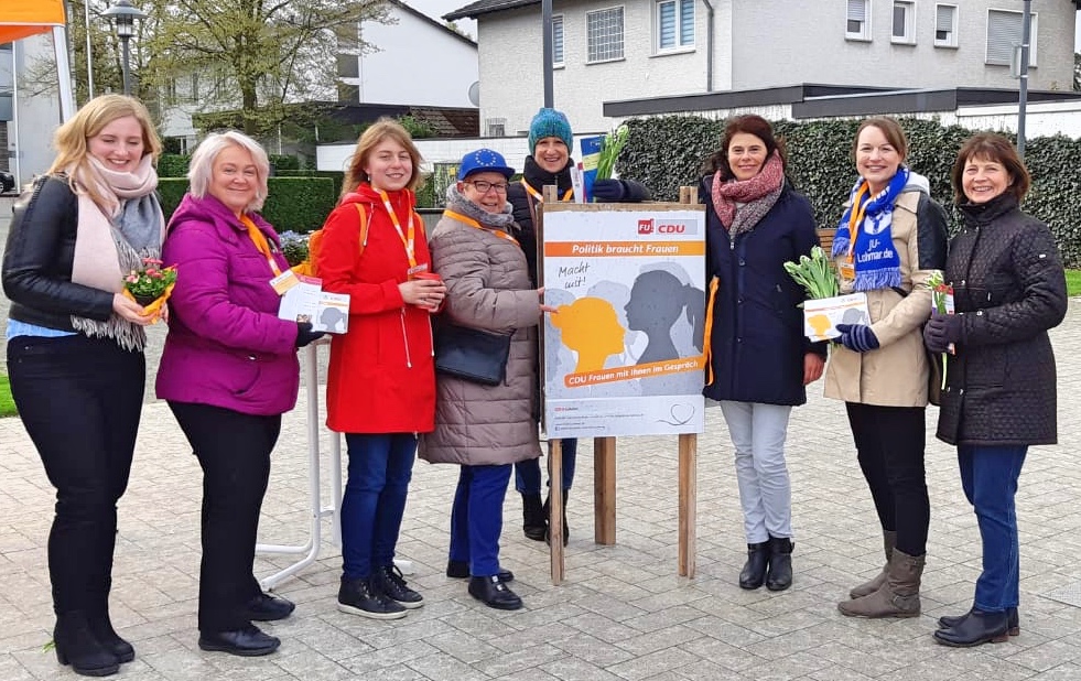 Das war wirklich ein echter Apriltag: Sonne, Wolken, Wind und Schneetreiben! Dennoch waren die Frauen der CDU Lohmar gemeinsam mit dem CDU-Stadtverband am Rathausplatz, um für das Engagement von Frauen in der Politik und für die anstehende Europawahl zu werben und zu informieren.
